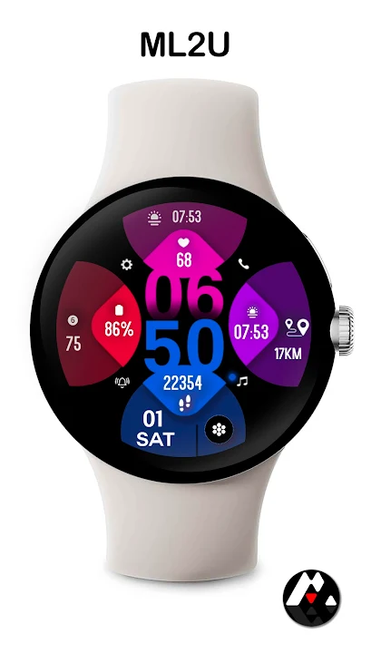 A unique segmented watch face with central digital time and vibrant, customizable zones for all your essential health and daily data. Stand out, stay informed.
