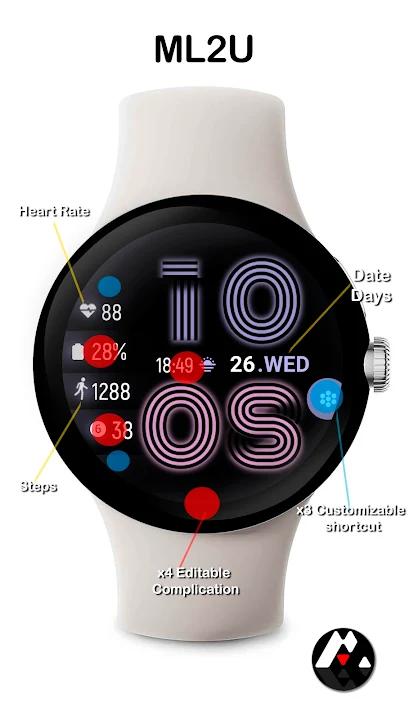 腕間,光影重現。這款錶盤採用醒目的現代美學設計,以大膽、閃耀的數位時間顯示。輕鬆追蹤步數、心率等訊息,並賦予您可自訂的活力,彰顯您的個性。