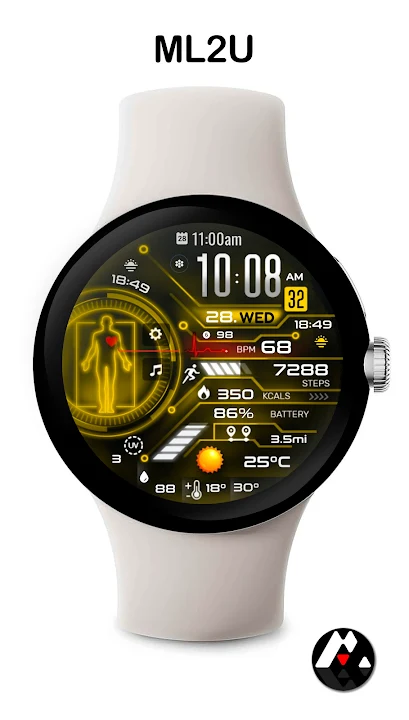 该表盘与 API 级别 34+ 的所有 Wear OS 设备兼容,包括 Samsung Galaxy Watch 4、5、6、7、Ultra、Pixel Watch 3、2、1 等。