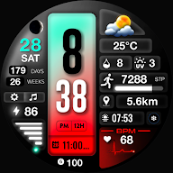 此表盘兼容所有 API 级别 34 及以上的 Wear OS 设备,包括三星 Galaxy Watch 4、5、6、7、Ultra、Pixel Watch 3、2、1 等。