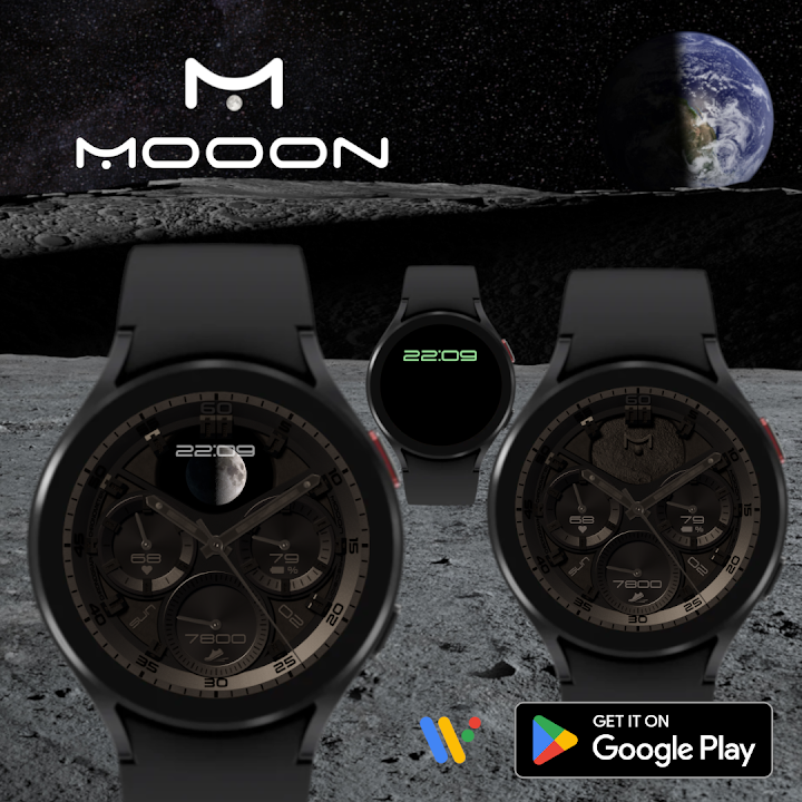 Mooon Precision Chrono Watch Face styled as a chronograph with Moon Phase.