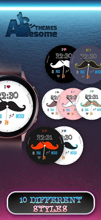 I LOVE MUSTACHE - Dual (Digital + Analogue) Watch Face For Wear OS