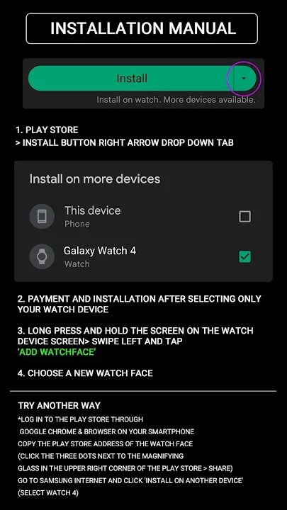 Go to Samsung Internet and click 'Install on another device' (select watch 4)