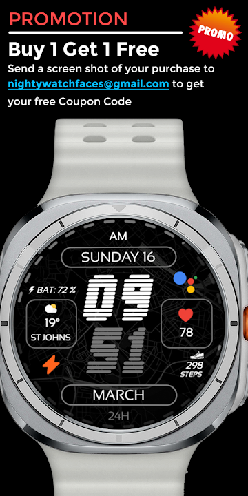 Send a screenshot of your purchase to nightywatchfaces@gmail.com to get your free promo code