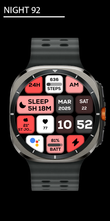 Editable Complication, Digital Clock (12h/24H), Date and Day, Battery Status