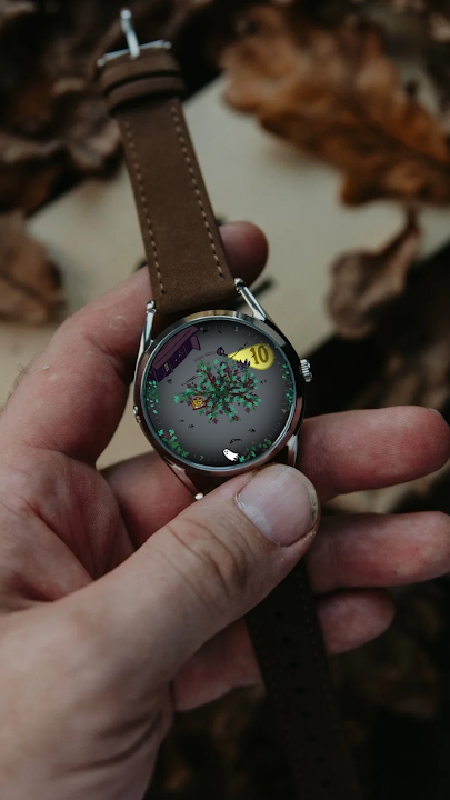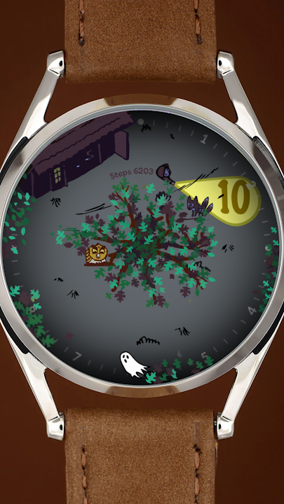 Night Light is a fun and mystical night-themed watch face. A ghost points out the hours, while a lantern-carrying character marks the minutes. Explore the mysterious journey in nature!