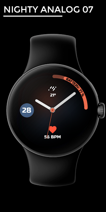 Editable Complication, Analog Clock, Date, Battery Status, Different Colors