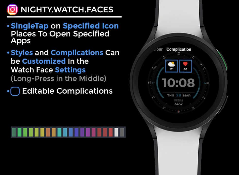 - 可在錶盤設定中自訂複雜功能(中長按)