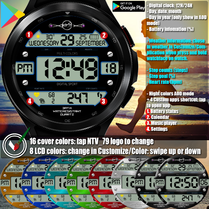 * Watch face Features: (*)
