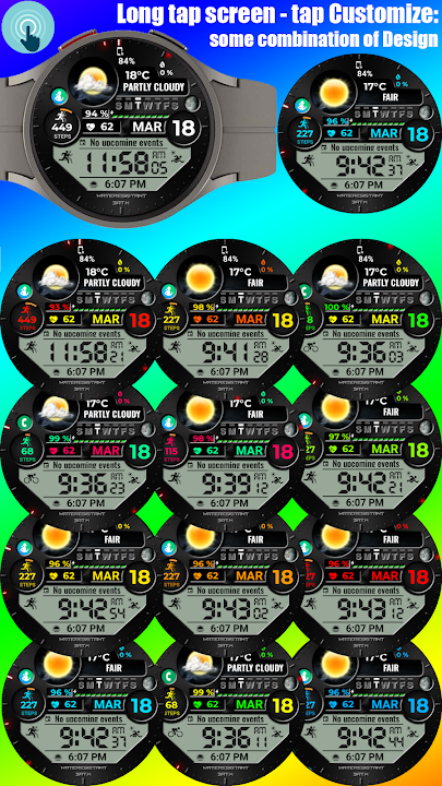 这是 Wear OS 表盘应用。它仅支持运行 WEAR OS 5+ API 34+ 的智能手表设备。例如 Galaxy Watch 4、5、6、7、8、Ultra、Google Pixel……