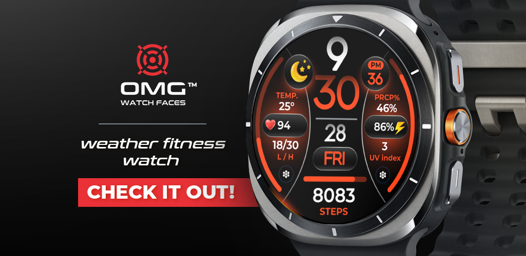 OMG 346 – 適用於 Wear OS 5 (API 34+) 的資訊豐富的天氣錶盤。領先天氣、追蹤您的健康狀況並一目了然地查看關鍵統計數據。非常適合戶外愛好者、積極的生活方式或只是讓每一秒鐘都變得有意義!