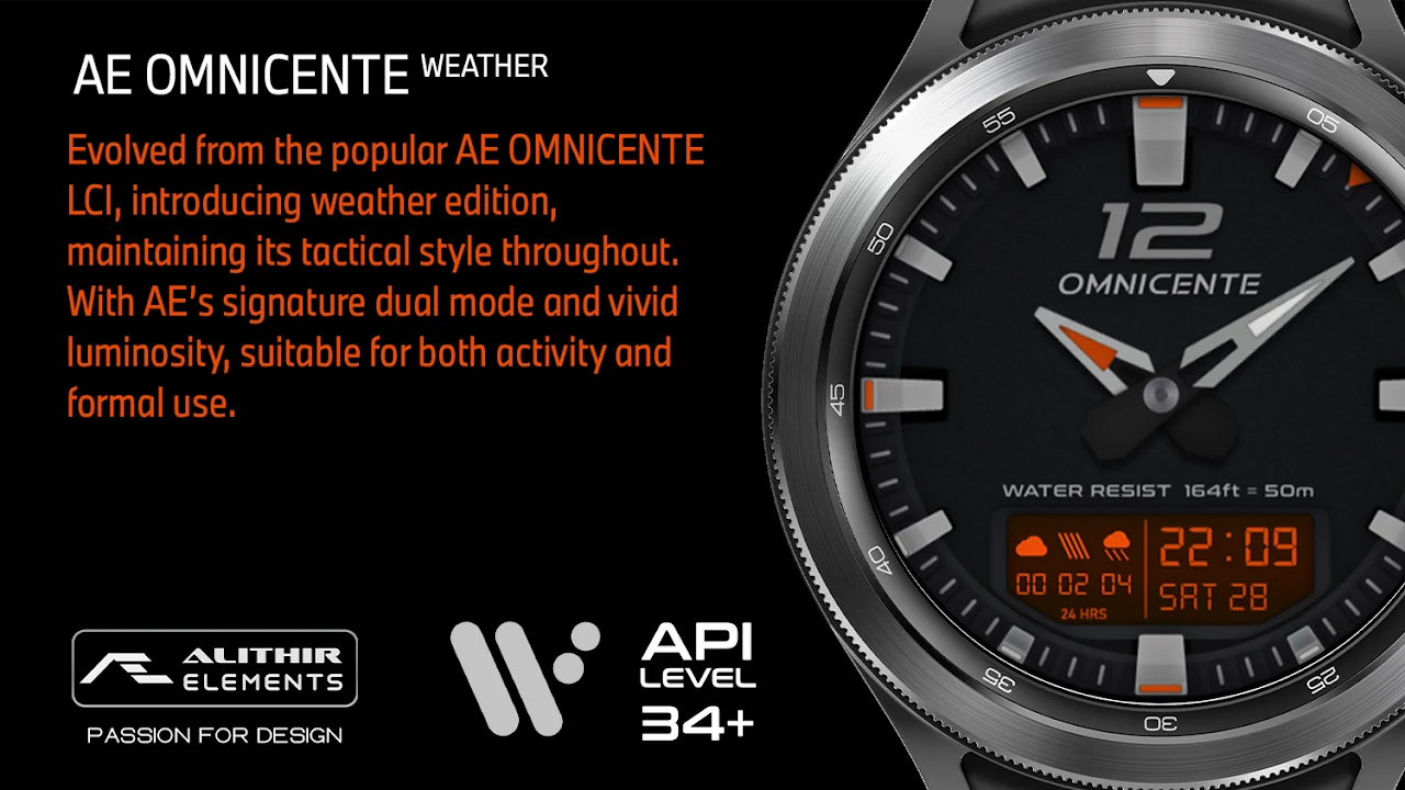 Evolved from the popular AE OMNICENTE LCI, introducing weather edition, maintaining its tactical style throughout. With AE’s signature dual mode and vivid luminosity, suitable for both activity and formal use.