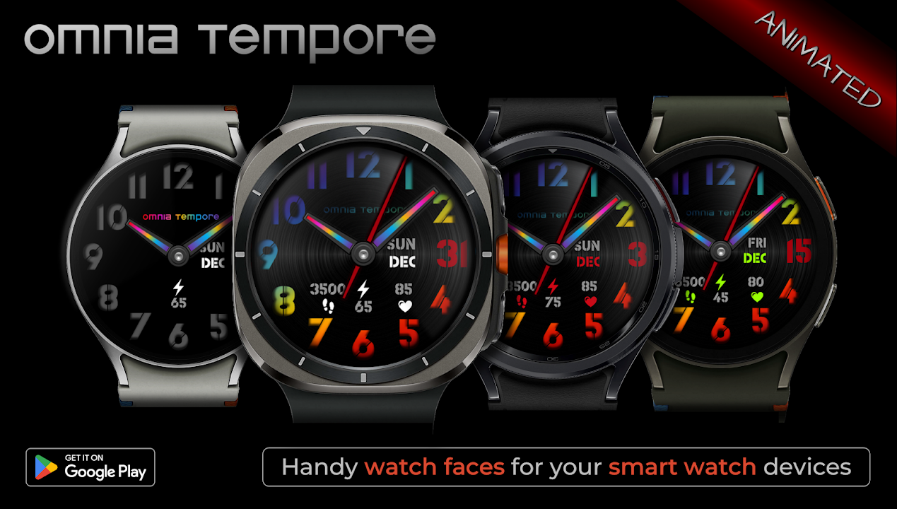 Omnia Tempore 为 Wear OS 设备(5.0 及以上版本)打造的经典模拟表盘,带有动画背景。表盘的某些部分可以更改(12 种不同颜色)。此外,该表盘还提供 6 个可自定义(隐藏)的应用快捷方式插槽和一个预设的应用快捷方式(日历)。不仅适合热爱自拍的人士……