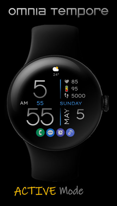 Omnia Tempore 为 Wear OS 设备(5.0 及以上版本)打造了一款简洁时尚、便捷易用的数字表盘。