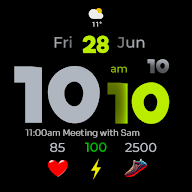 A stylish, easy-to-read digital watch face for Wear OS devices (version 5.0+) from Omnia Tempore with many customizable features. The watch face offers 30 color variants for numbers, four (hidden) customizable app shortcut slots as well as two slots for customizable complications. The step count and heart rate measurement features are also included. This easy-to-read watch face also stands out for its low power consumption in AOD mode that makes it perfect for everyday use.