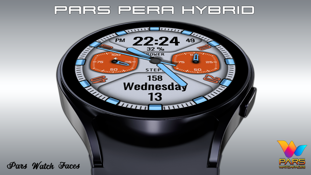 Pars Pera watch face is a hybrid watch face with an eye-catching interface and informative display.