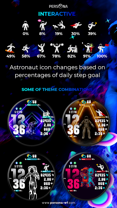 “PER28 宇航员动画太空表盘”是一款数字 Wear OS 表盘