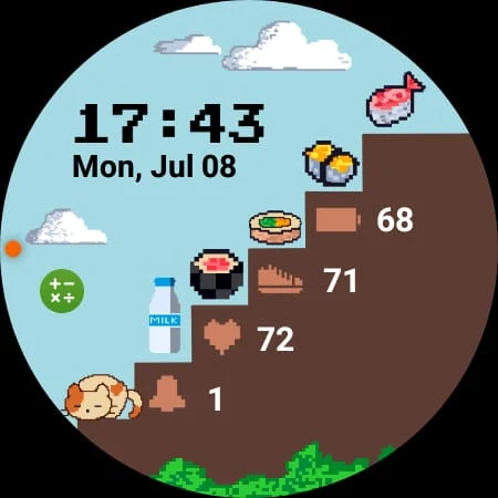 在可爱的像素游戏般的环境中醒来并喂养您的宠物猫,同时朝着您的 STEPS 健身目标迈进!