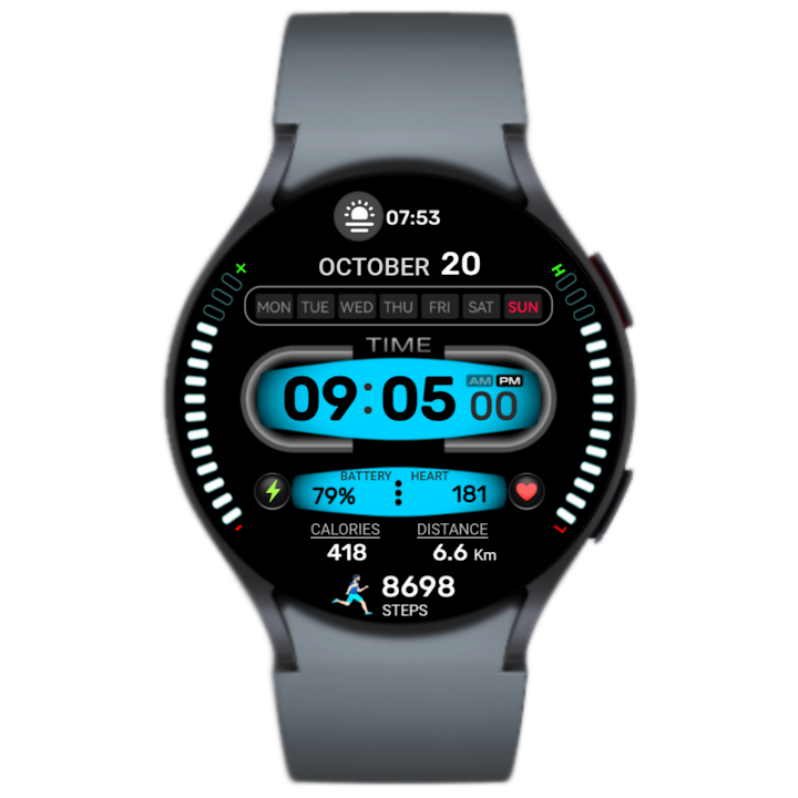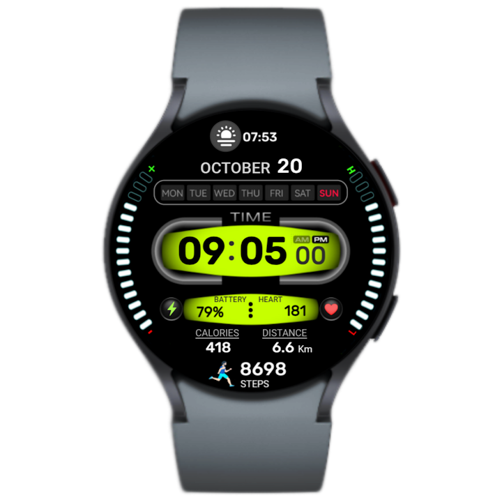 - 步数、心率、电池电量、日出和日落时间、卡路里、距离
