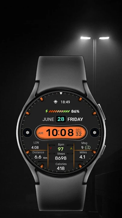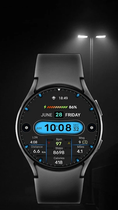 - 步數、心率、電池電量、下一個活動、未讀訊息計數、日出和日落時間、卡路里計算、距離、英里