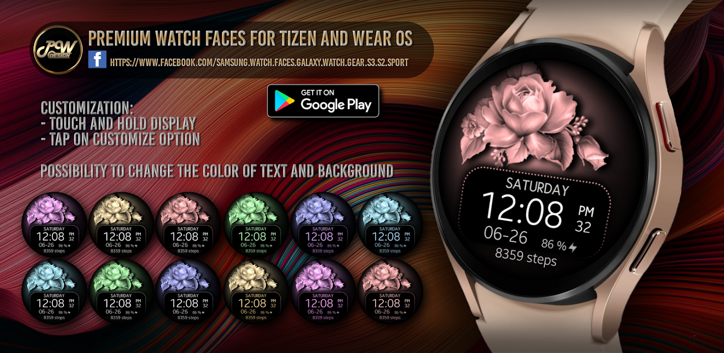 PWW06 - Blossom Watch 是一款專為熱愛花卉圖案的女性設計的優雅 Wear OS 錶盤。這款錶盤以精緻的花卉圖案和細節,將自然之美融入您的腕錶。每一次凝視腕錶,都將成為您沉浸在優雅花卉世界中的美好時刻。