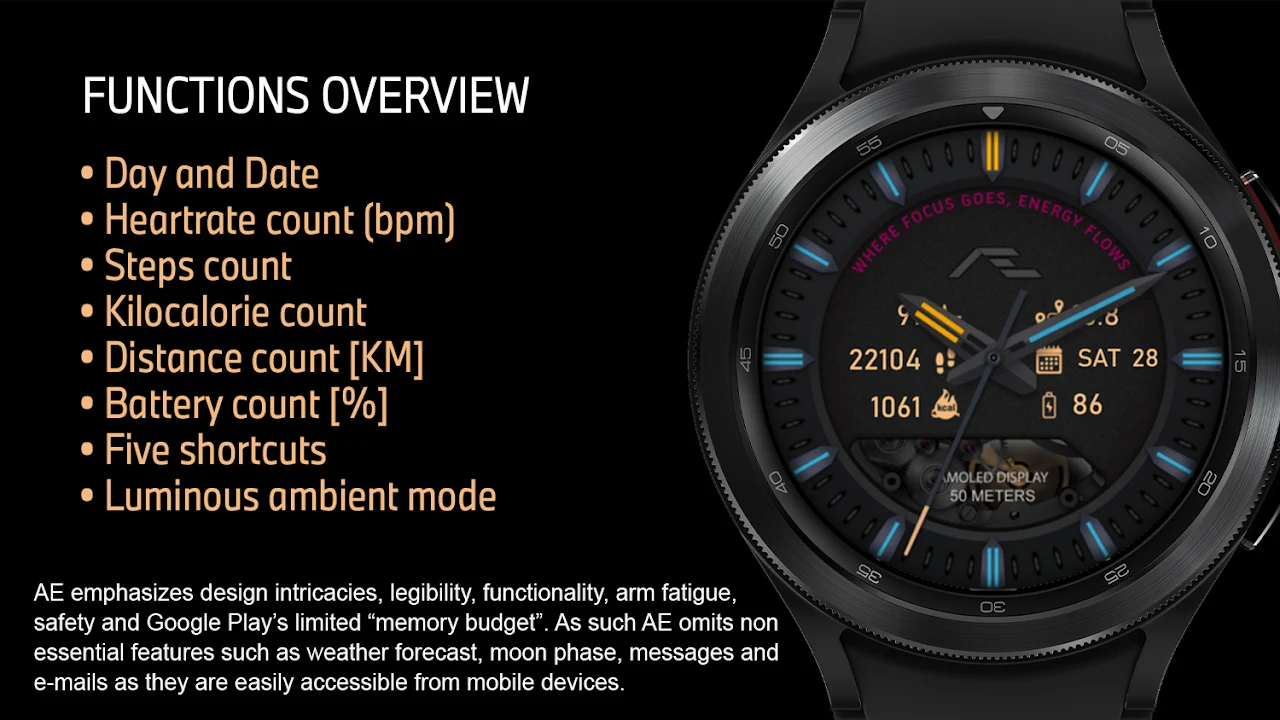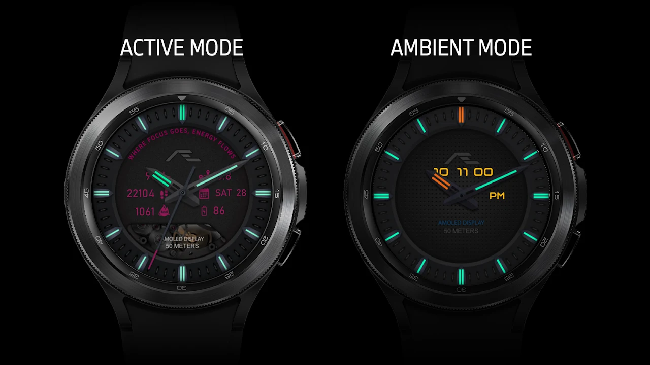 這是 Wear OS 錶盤應用程式 (app),由三星提供支援的 Watch Face Studio 建置。在 Samsung Watch 4 Classic 上進行測試,所有特性和功能均如預期運作。這可能不適用於其他 Wear OS 手錶。