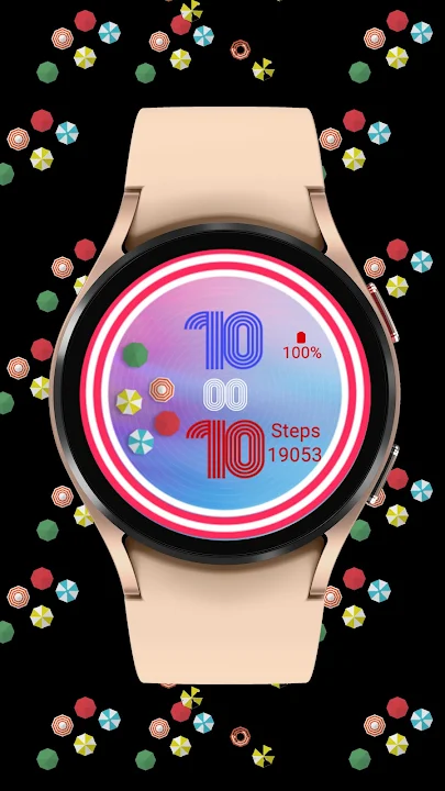 WEAR OS 的應用程式。錶盤上有白藍紅數字。旋轉雨傘的動畫。