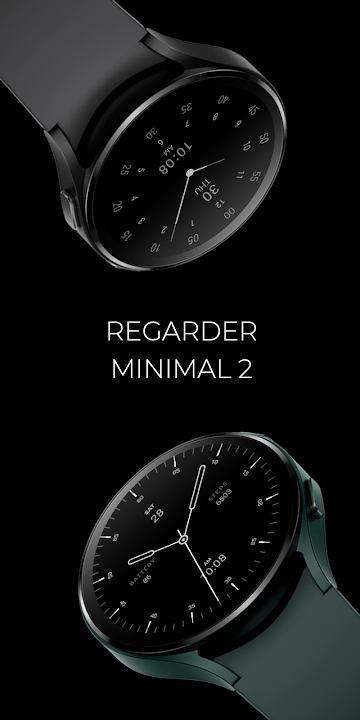 隆重推出 Regarder Minimal 2 - 适用于 Wear OS 智能手表的时尚简约表盘。这款表盘以简洁为设计理念,显示屏干净整洁,注重可读性和优雅。