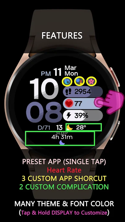 *MANY THEME COLOR COMBINATIONS (TAP & HOLD DISPLAY TO CUSTOMIZE)