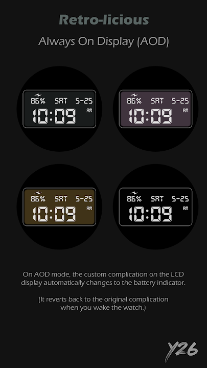 Digital watch face for Wear OS devices. Not suitable for rectangular watches.