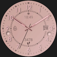 Elegant and simple, this rose gold analog watch face for Wear OS features a soft pink design. Ideal for those who appreciate a clean and graceful look on their smartwatch.