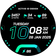 Active Design 致力于打造清晰、个性化且现代美观的 Wear OS 高级表盘。在 Google Play 中搜索“Active Design 表盘”了解更多信息。