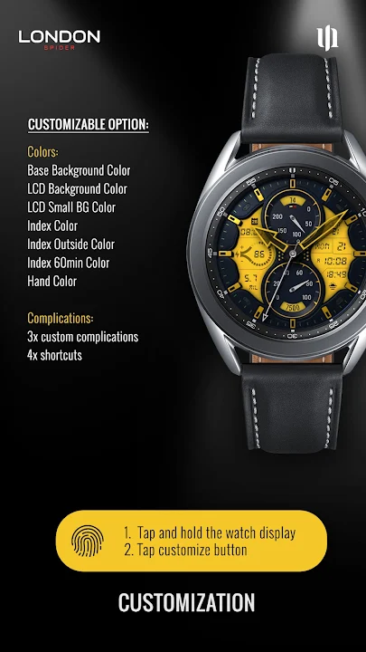 S4U London Spider 是一款极其逼真的混合表盘。高品质和多种颜色自定义选项是其主要卖点。非凡的 3D 效果让您仿佛佩戴着真正的手表。您可以浏览图库,获得更好的体验。