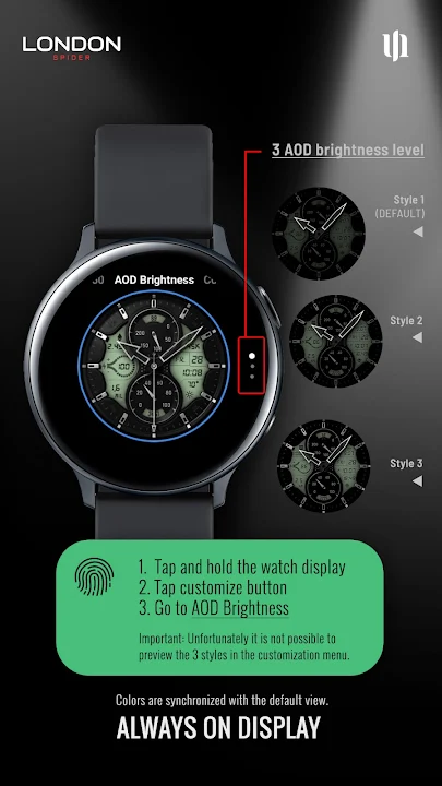 - 某些智能手表可能会根据环境光条件自动调暗 AOD 显示屏。