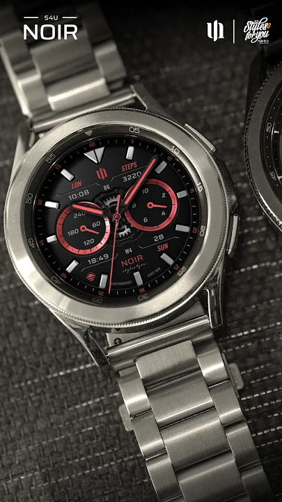 Enhance your Wear OS experience with the S4U Noir. A luxury realistic classic analog watch face with 3 custom complications and many customization options.