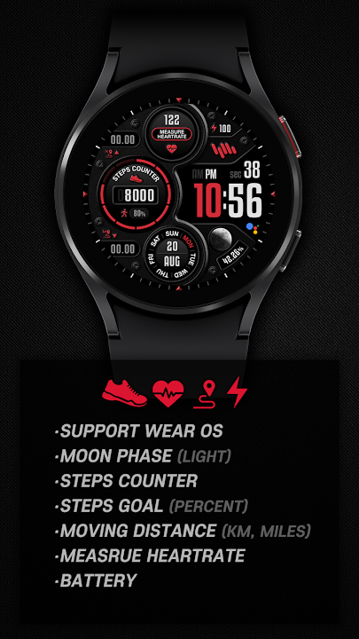 *The smartphone app is an additional app in the Watchface app that explains the download guide. It may be different from the watchface screenshot of the smartphone app and the watchface screenshot that actually downloaded. Most of SamWatch's Watchface app products include apps for smartphones.
