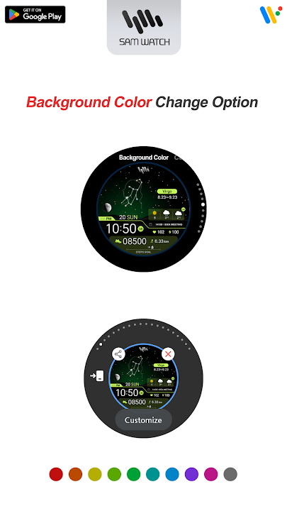 *The ‘SamWatch Install Guide’ apps are additional apps that support downloading apps on Wear OS devices. It may be different from the watch face screenshot of the ‘SamWatch Install Guide’ app and the watch face screenshot that actually downloaded. Most of SamWatch’s watch face app products include apps for smartphones. Apps for ‘SamWatch Install Guide’ only help you download Wear OS apps.