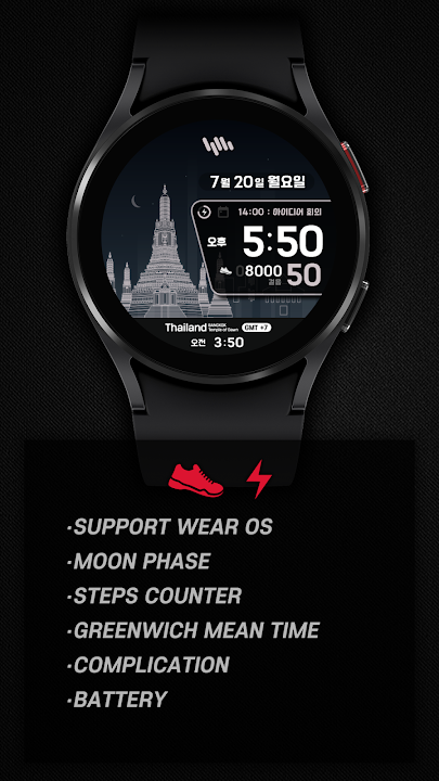 *The smartphone app is an additional app in the Watchface app that explains the download guide. It may be different from the watchface screenshot of the smartphone app and the watchface screenshot that actually downloaded. Most of SamWatch's Watchface app products include apps for smartphones.
