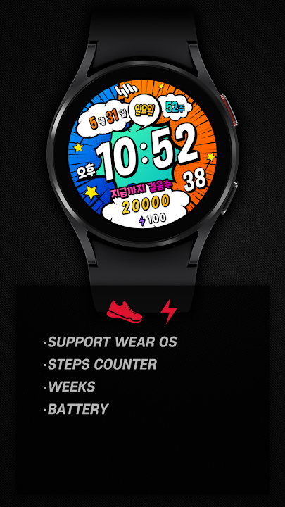 *The smartphone app is an additional app in the Watchface app that explains the download guide. It may be different from the watchface screenshot of the smartphone app and the watchface screenshot that actually downloaded. Most of SamWatch's Watchface app products include apps for smartphones.