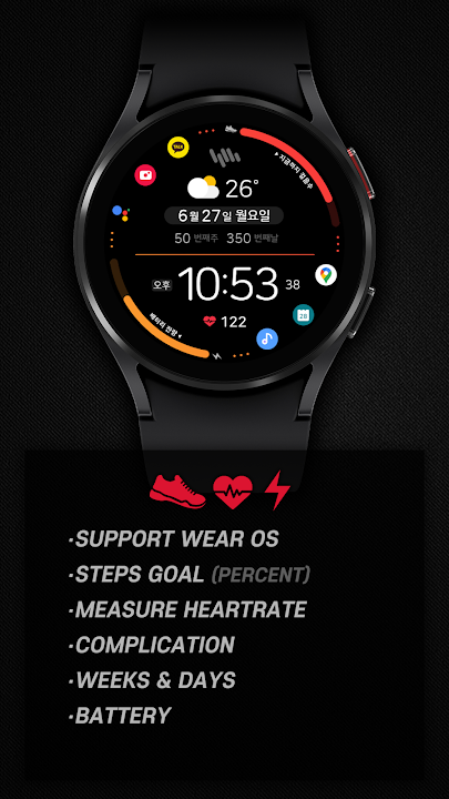 *The smartphone app is an additional app in the Watchface app that explains the download guide. It may be different from the watchface screenshot of the smartphone app and the watchface screenshot that actually downloaded. Most of SamWatch's Watchface app products include apps for smartphones.