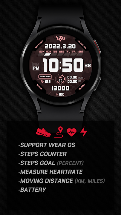 *The smartphone app is an additional app in the Watchface app that explains the download guide. It may be different from the watchface screenshot of the smartphone app and the watchface screenshot that actually downloaded. Most of SamWatch's Watchface app products include apps for smartphones.