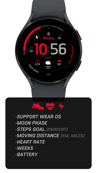 • Heart Rate Monitor - Display heart rate data measured by your watch