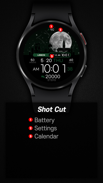 *智能手機應用程序是 Watchface 應用程序中的附加應用程序,用於解釋下載指南。它可能與智能手機應用程序的錶盤截圖和實際下載的錶盤截圖不同。 SamWatch 的大多數 Watchface 應用程序產品都包含適用於智能手機的應用程序。