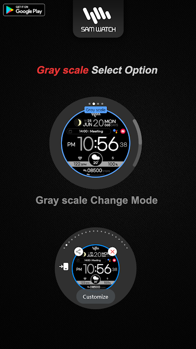 *The smartphone app is an additional app in the Watchface app that explains the download guide. It may be different from the watchface screenshot of the smartphone app and the watchface screenshot that actually downloaded. Most of SamWatch's Watchface app products include apps for smartphones.