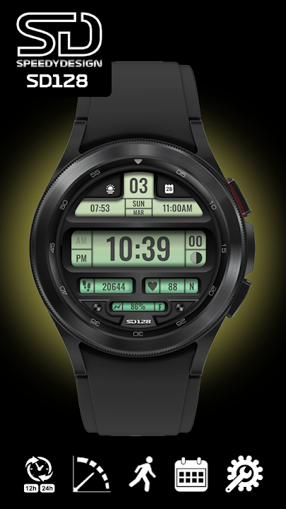 帶有數位時間的復古風格面孔,包含:2 個可自訂的快捷方式、3 個可自訂的複雜功能,您可以在其中獲取您喜歡的數據,例如天氣、氣壓計、行駛距離、卡路里、紫外線指數、下雨的可能性等等。