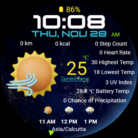 第二地球動畫磨損Os |完整的天氣和健康錶盤