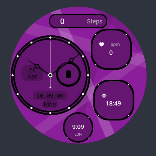 This classy watch face has multiple customizable compilations and a wide variety of colours to choose from.