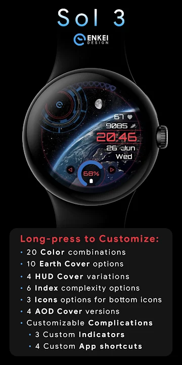 Animated digital watch face with a view of planet Earth, right on your wrist!