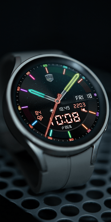 Colorful Hybrid dial for Wear OS with 1 Complication, Heartrate and Pedometer