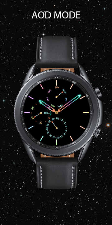 彩色计时码表风格,具有 3 种复杂功能和 7 种字体颜色。手表特点:电池数字和模拟模拟周模拟日期3 种可定制的复杂功能点击数字电池打开电池应用程序